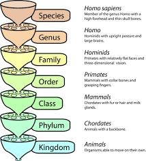 The classification of organisms has various hierarchical categories.