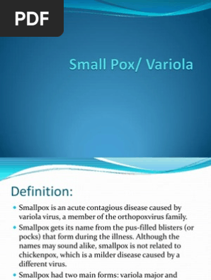 Definition of variola virus. Smallpox was an infectious disease caused by one of two virus variants variola major and variola minor. In the 1980s the soviet union developed variola as an aerosol biological weapon and produced tons of virus laden material annually intended for intercontinental ballistic missiles. Can be used as a bioweapon smallpox virus poxvirus any of a group of viruses that can. Vi rus any member of a unique class of infectious agents which were originally distinguished by their smallness hence they were described as filtrable because of their ability to pass through fine ceramic filters that blocked all cells including bacteria and their inability to replicate outside of and without.