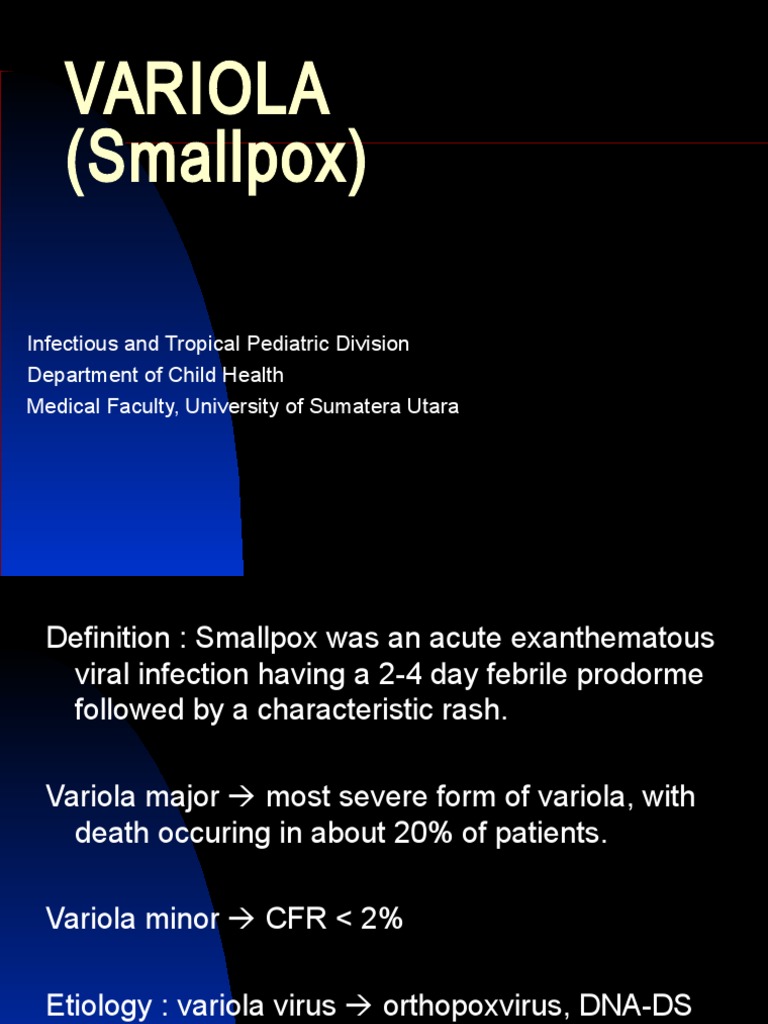 The variola virus is a large double stranded dna virus that is the causative agent of smallpox. Information and translations of variola virus in the most comprehensive dictionary definitions resource on the web. Several factors contribute to the concern about the use of smallpox as a biological weapon. The last naturally occurring case was diagnosed in october 1977 and the world health organization who certified the global eradication of the disease in 1980.