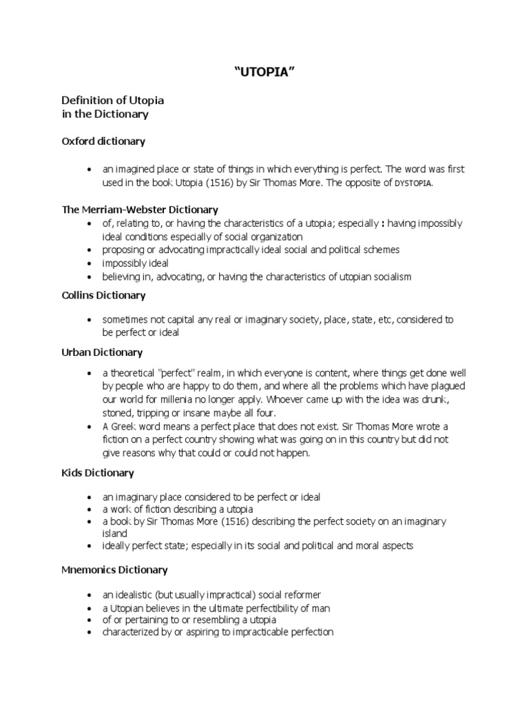 Utopia Definition Merriam Webster
