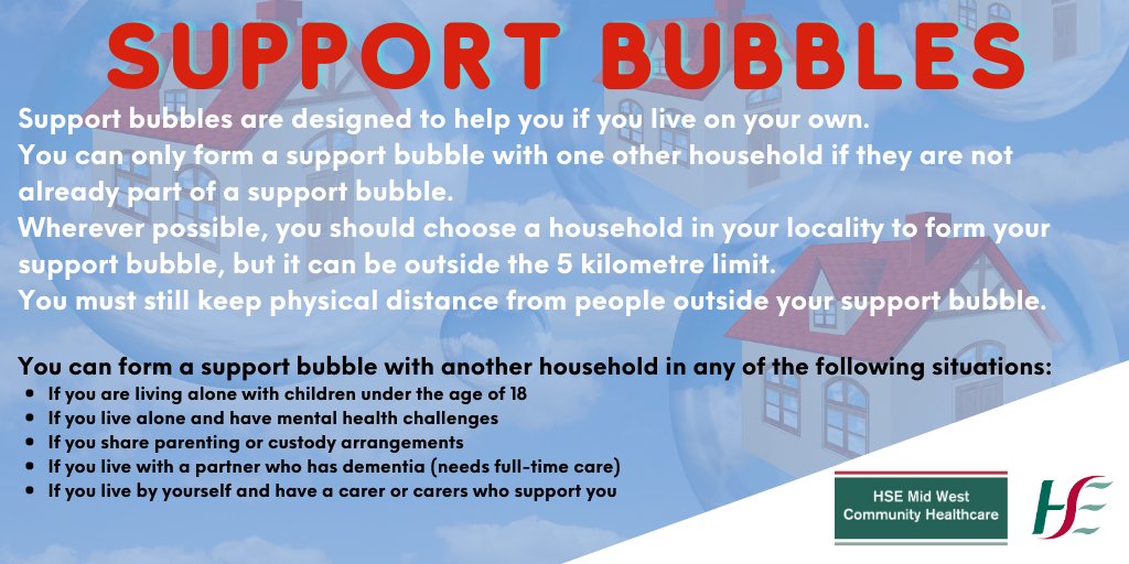 In england single adults living alone or single parents whose children are under 18 can form a support. A bubble is defined as a group of people with whom you have close physical contact. As the multiple households are considered to be a single household if anyone in a bubble displays covid 19 symptoms then the entire bubble must self isolate or quarantine to prevent further spread. The new lockdown was announced on monday evening by taoiseach micheal martin.